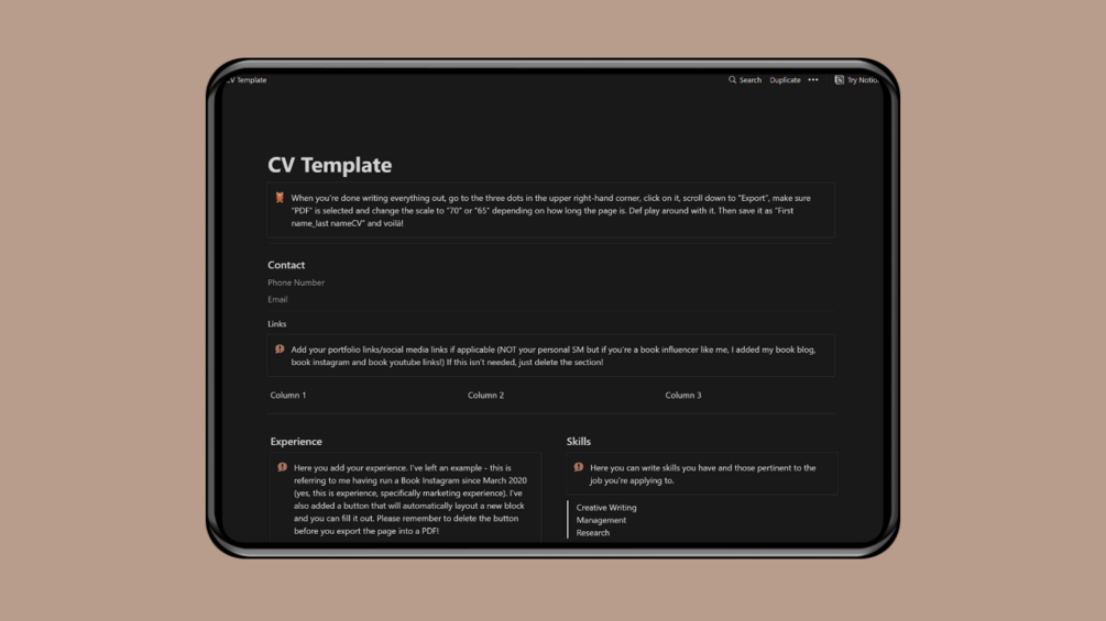 Give your CV a modern look and catch the eye of recruiters with Notion.
