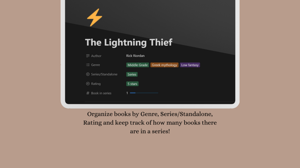 Organize your books in the Book Gallery by Genre, Series/Standalone as well as keep track of how many books there are in a series!